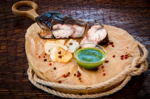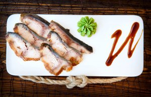 Филе мраморного сома горячего копчения под соусом «Унаги»