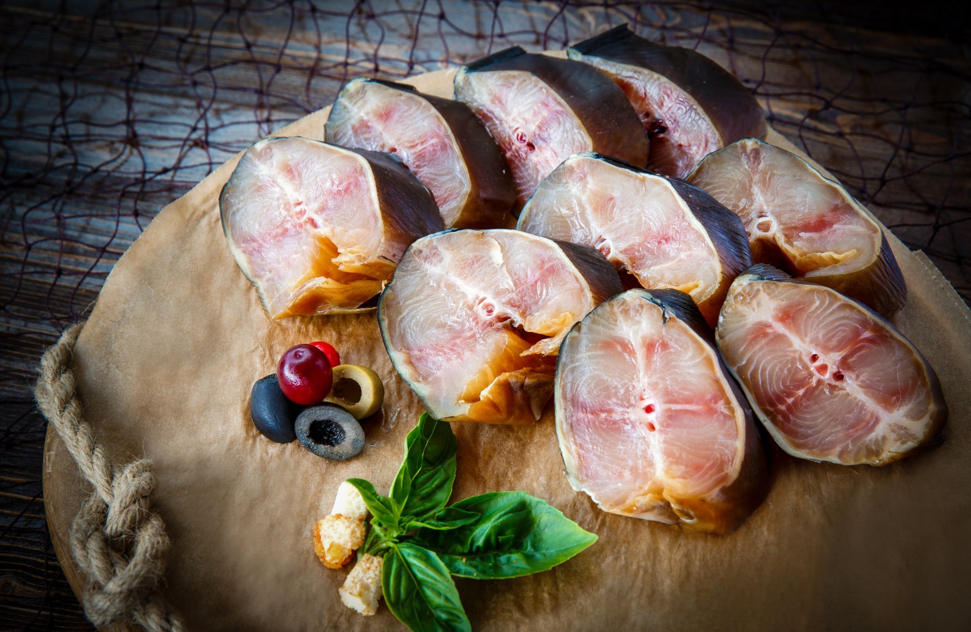 Кусочки холодного копчения из мраморного сома