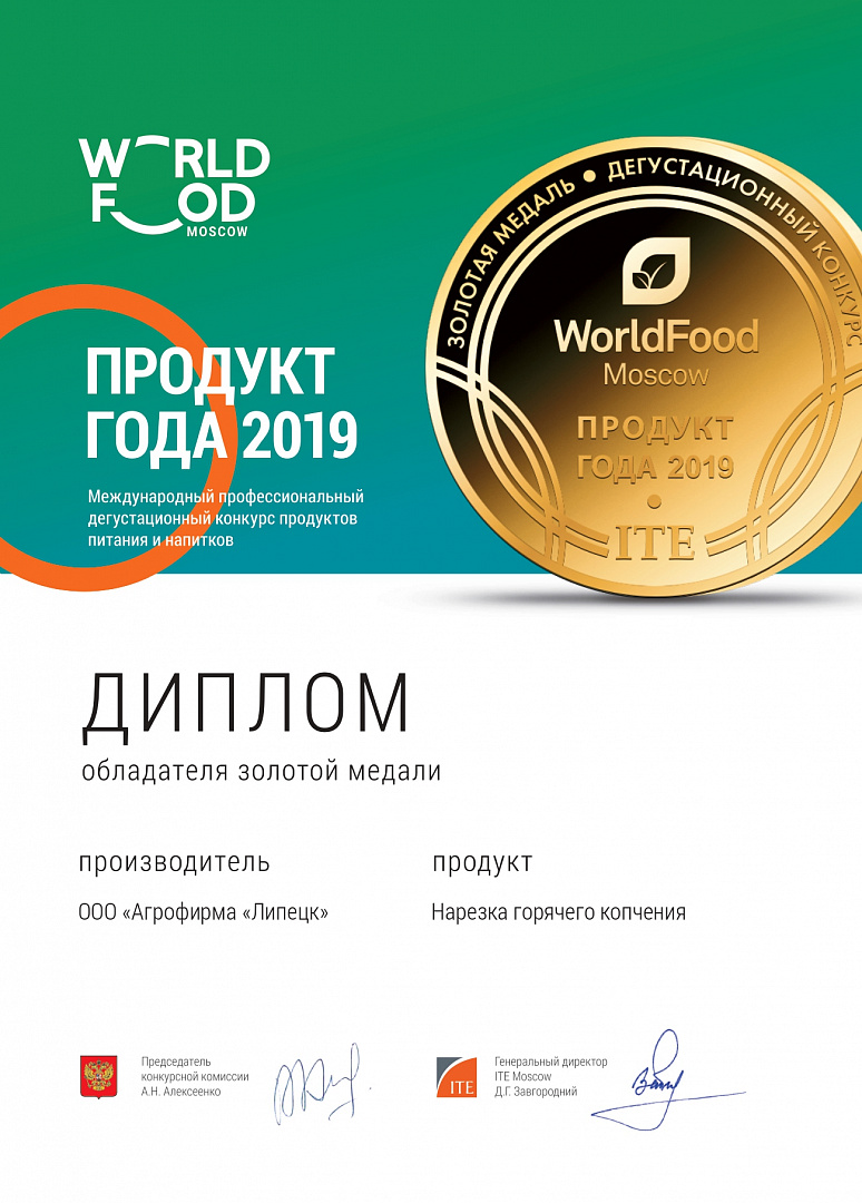 Дипломы полученные на выставке WF2019 в номинации "Продукт года"